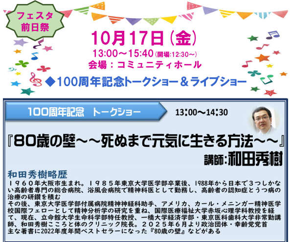100周年記念フォーラム 要領よく老いる ~人生100年時代の上手な生き方~