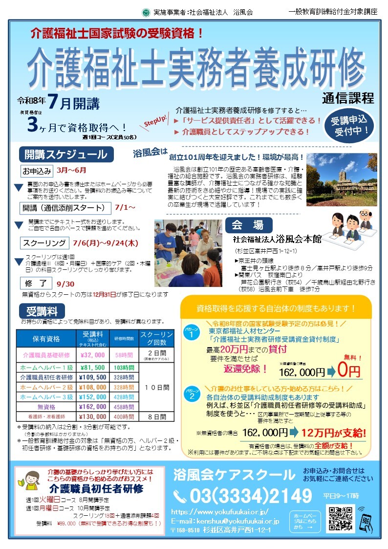 ≪介護福祉士実務者研修≫ 7月開講コース 申込受付中!!