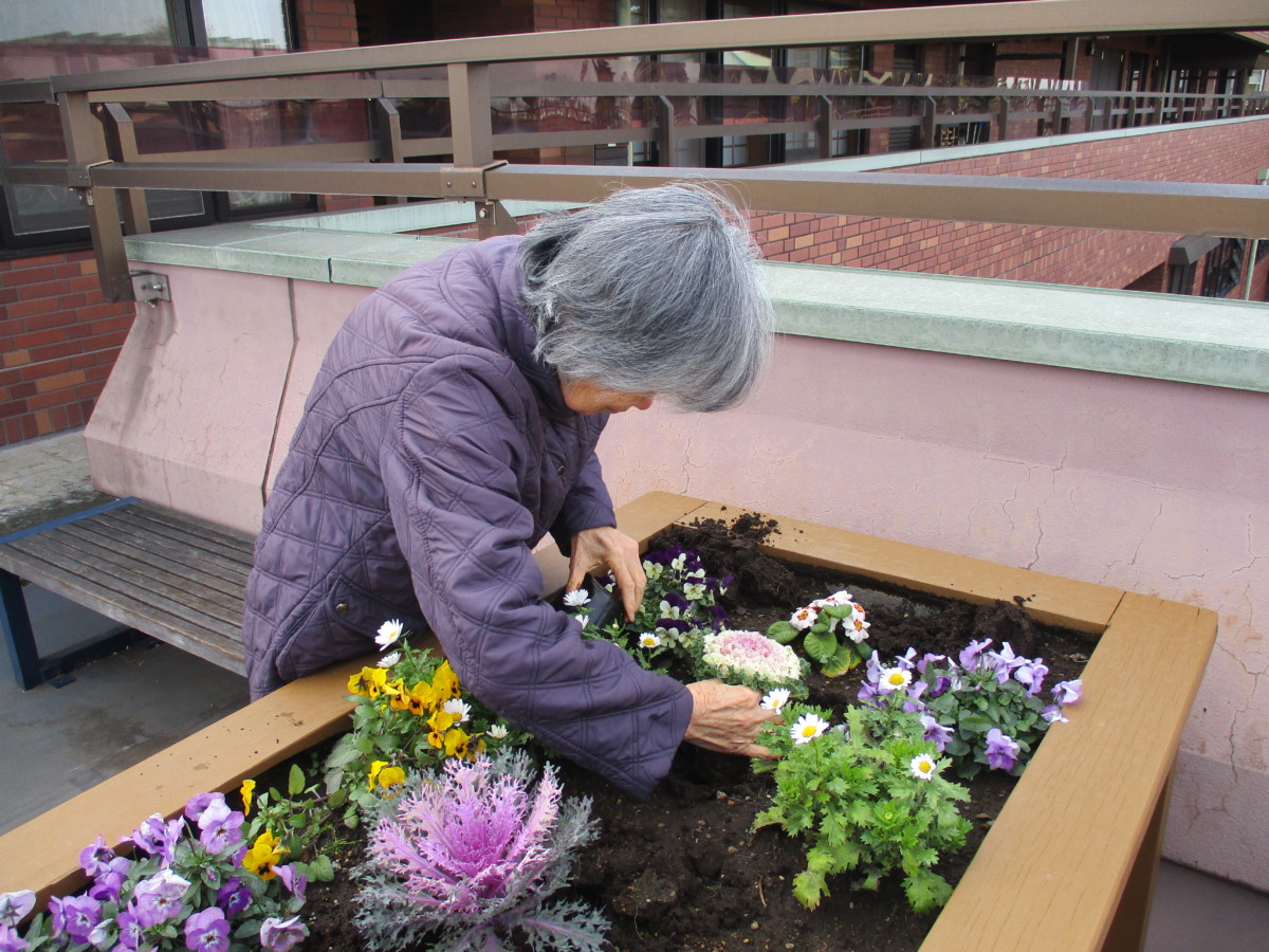 また、同じ日に「葉牡丹」と「チューリップの球根」も花壇へ植えることにしました。葉牡丹を植えながら「綺麗ね。」「もうお正月なの?」と、チューリップ球根を植えながら「咲くのが楽しみね。」「家でも毎年植えていたわ。」と会話が弾んでいました。