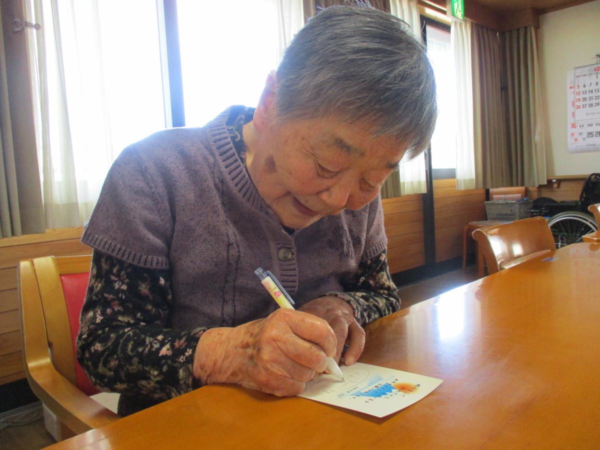 また、少し遅くなってしまいましたが毎年恒例の「年賀状書き」もしました。ご家族の顔☺を思い浮かべて書かれているのか笑顔で丁寧に書かれていました。