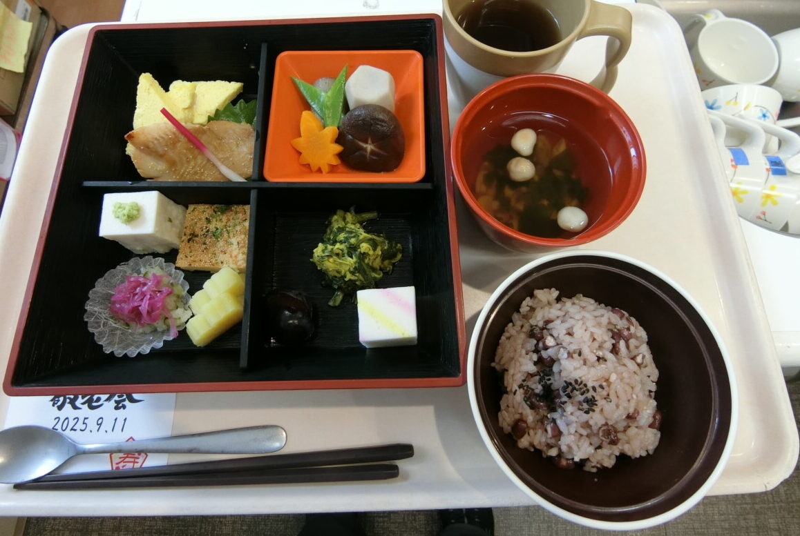 敬老会という事で食事もスペシャルなメニューでした。左記の写真がメニューです。食べられた方がうらやましいですね。