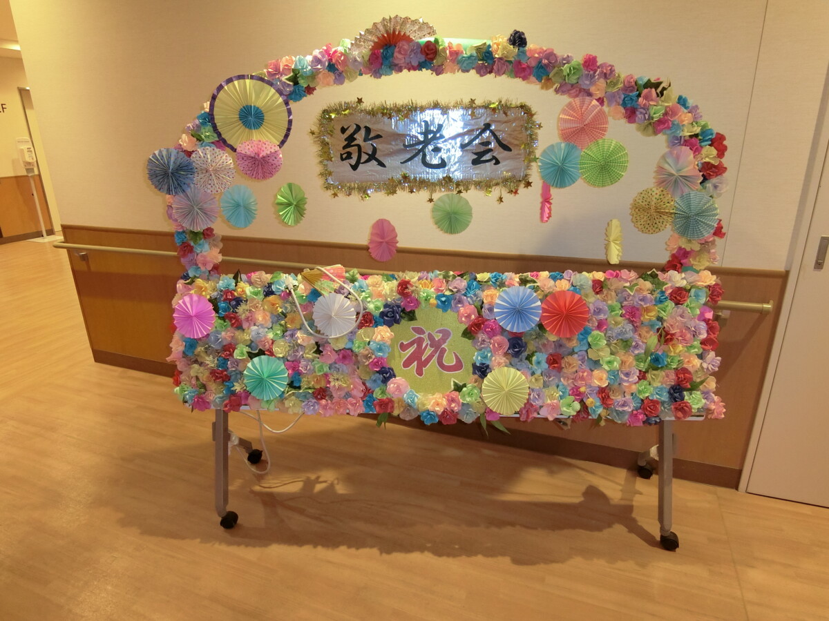 その他に壁には古希や白寿と言った、ご長寿者の名前を貼りだしたり、敬老にちなんだゲームを行いました。