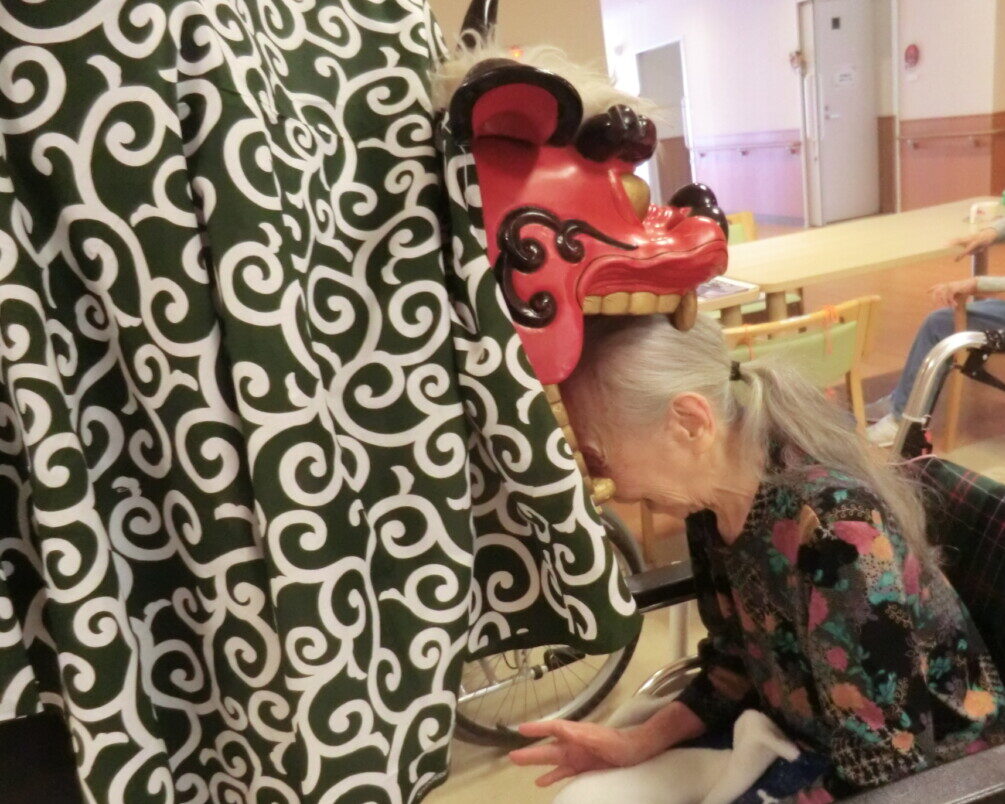その後フロア職員が獅子舞に扮して登場!