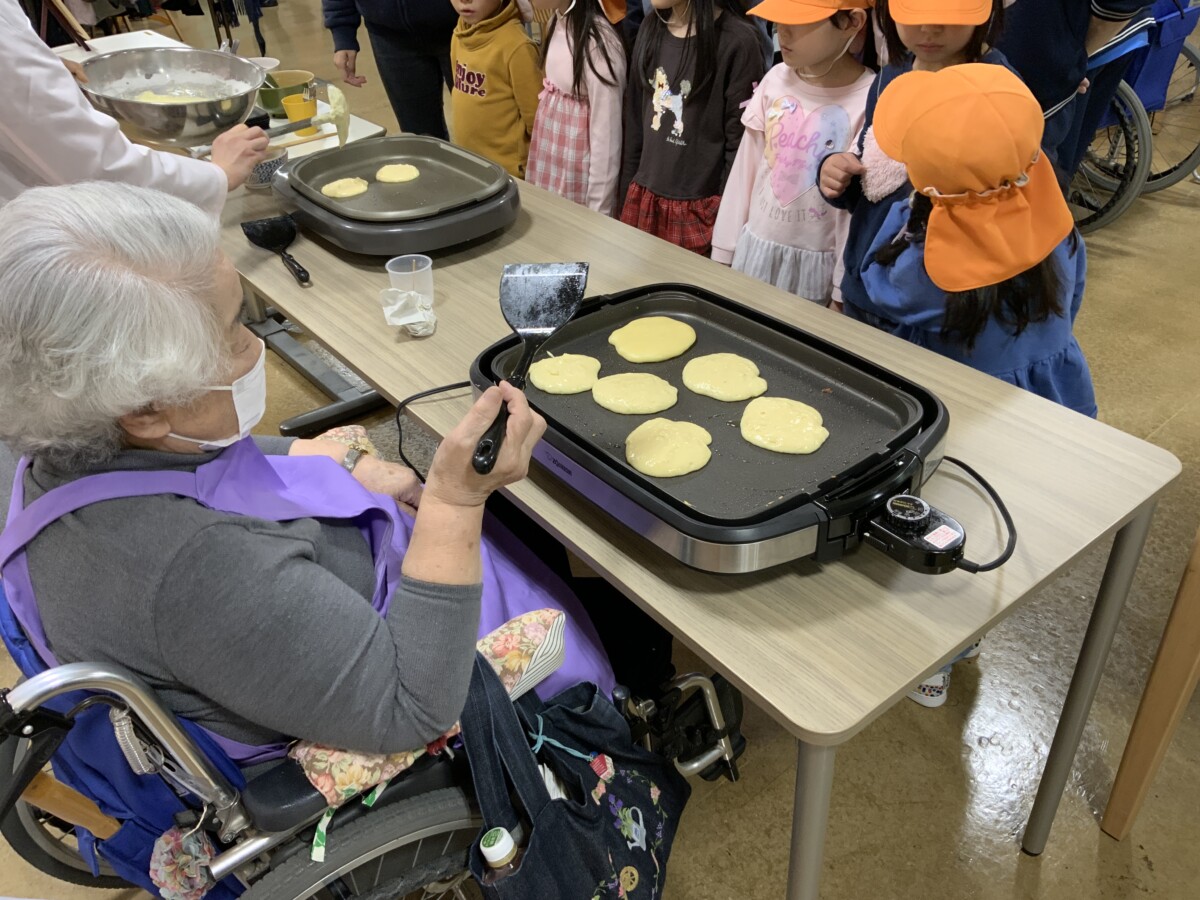 こどもたちも地域の皆様もホットケーキでニコニコの一日。