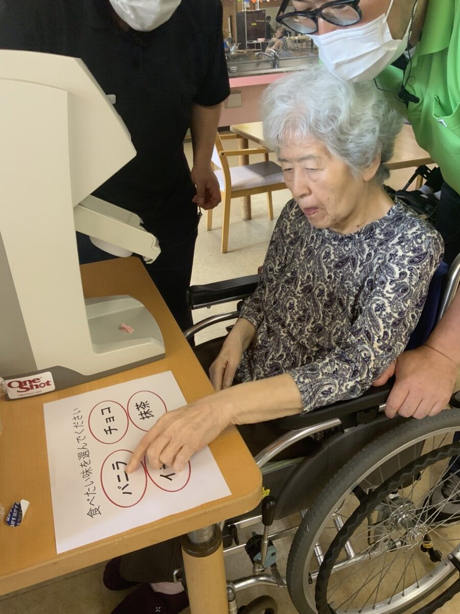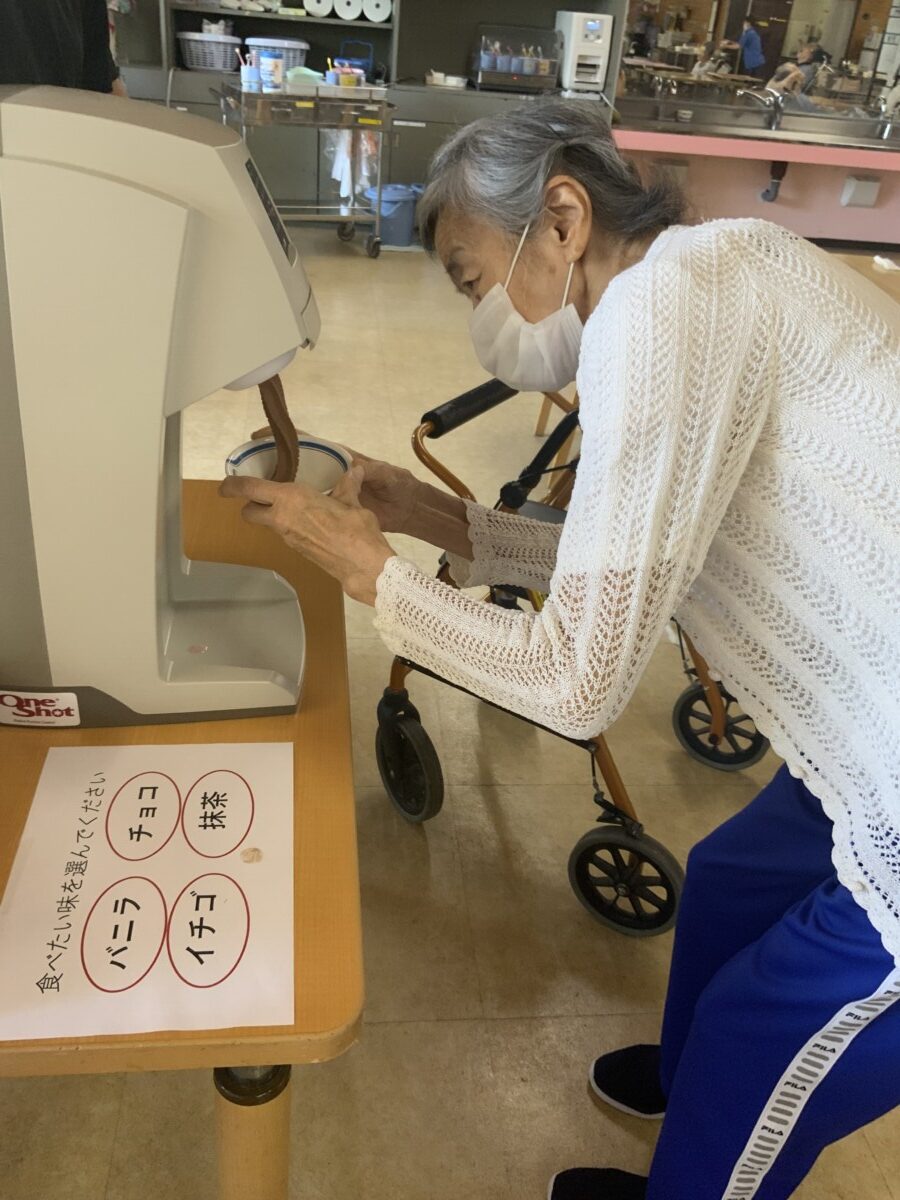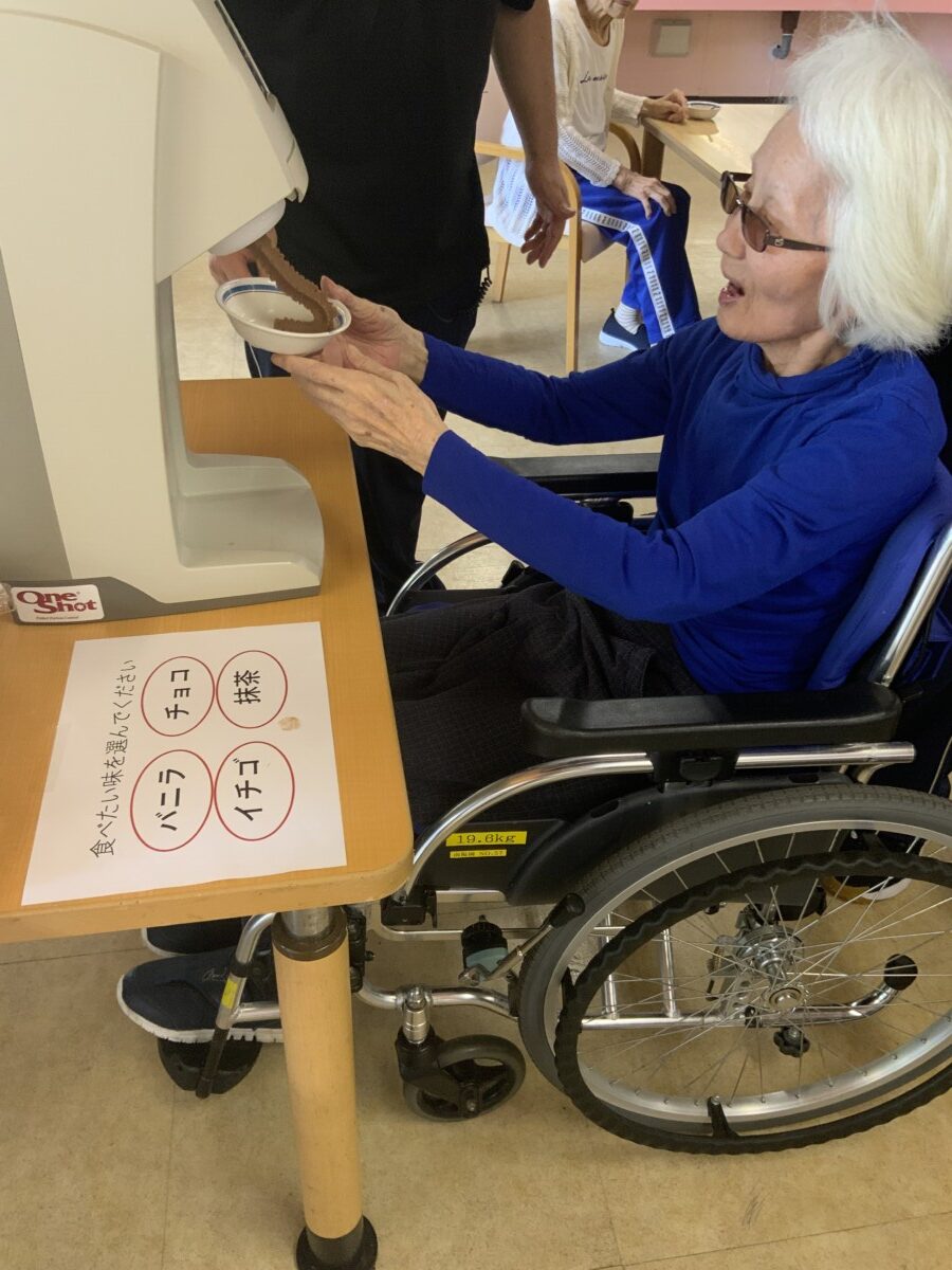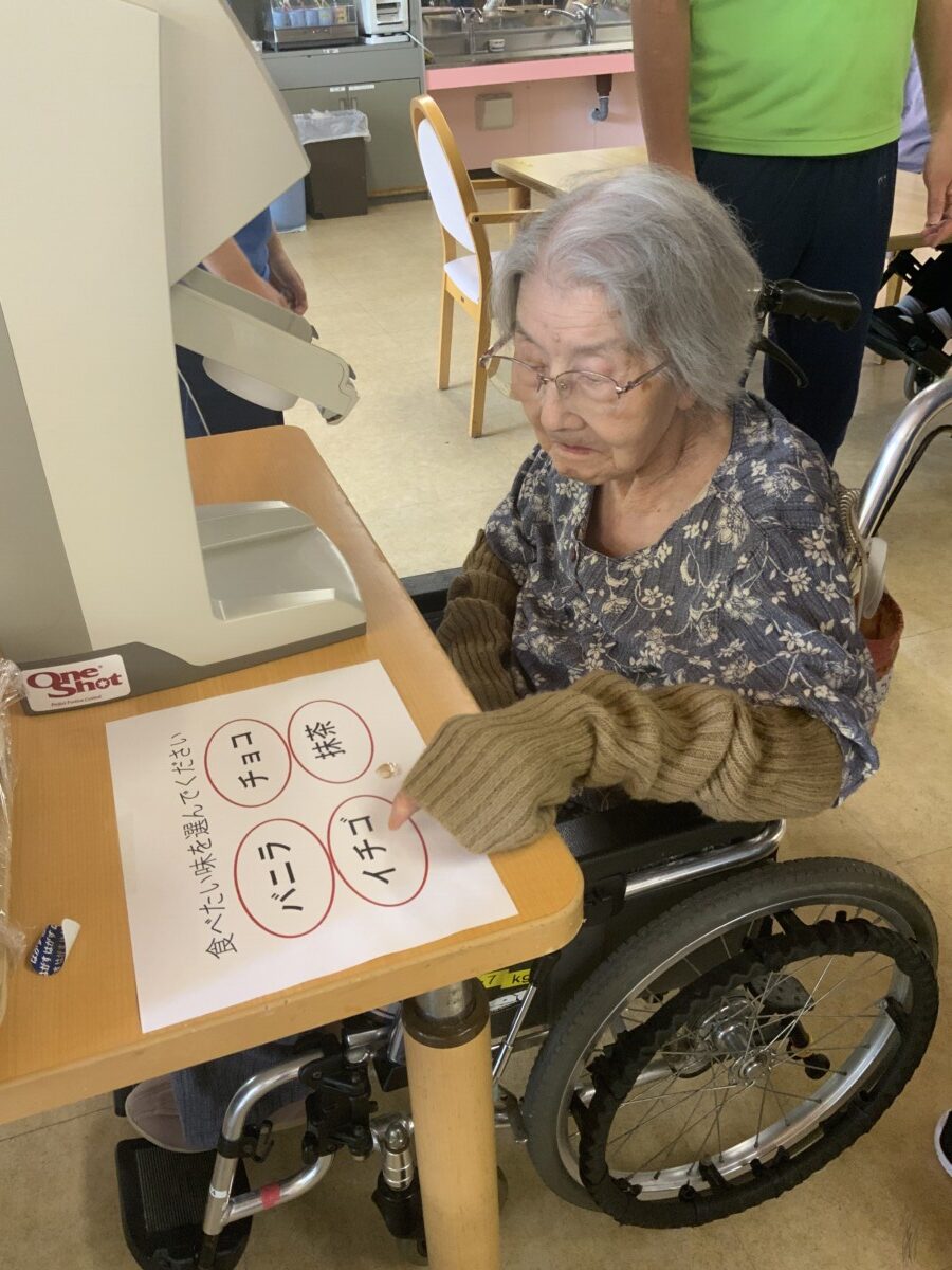 バニラ・チョコ・イチゴ・抹茶を用意しました。ミックスも出来ます。皆さんそれぞれ好きなのを選びました。どれがいいかなー?🍓