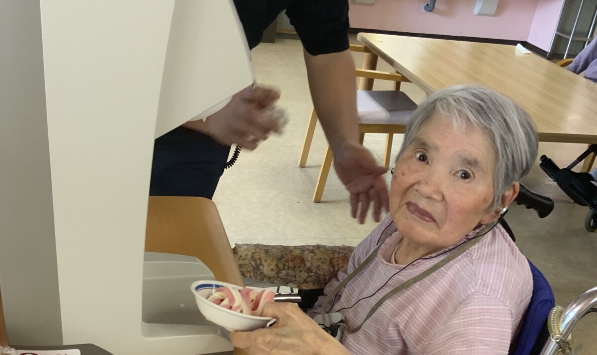 お皿からこぼさない様、自分たちでぐるぐる回して渦巻に!