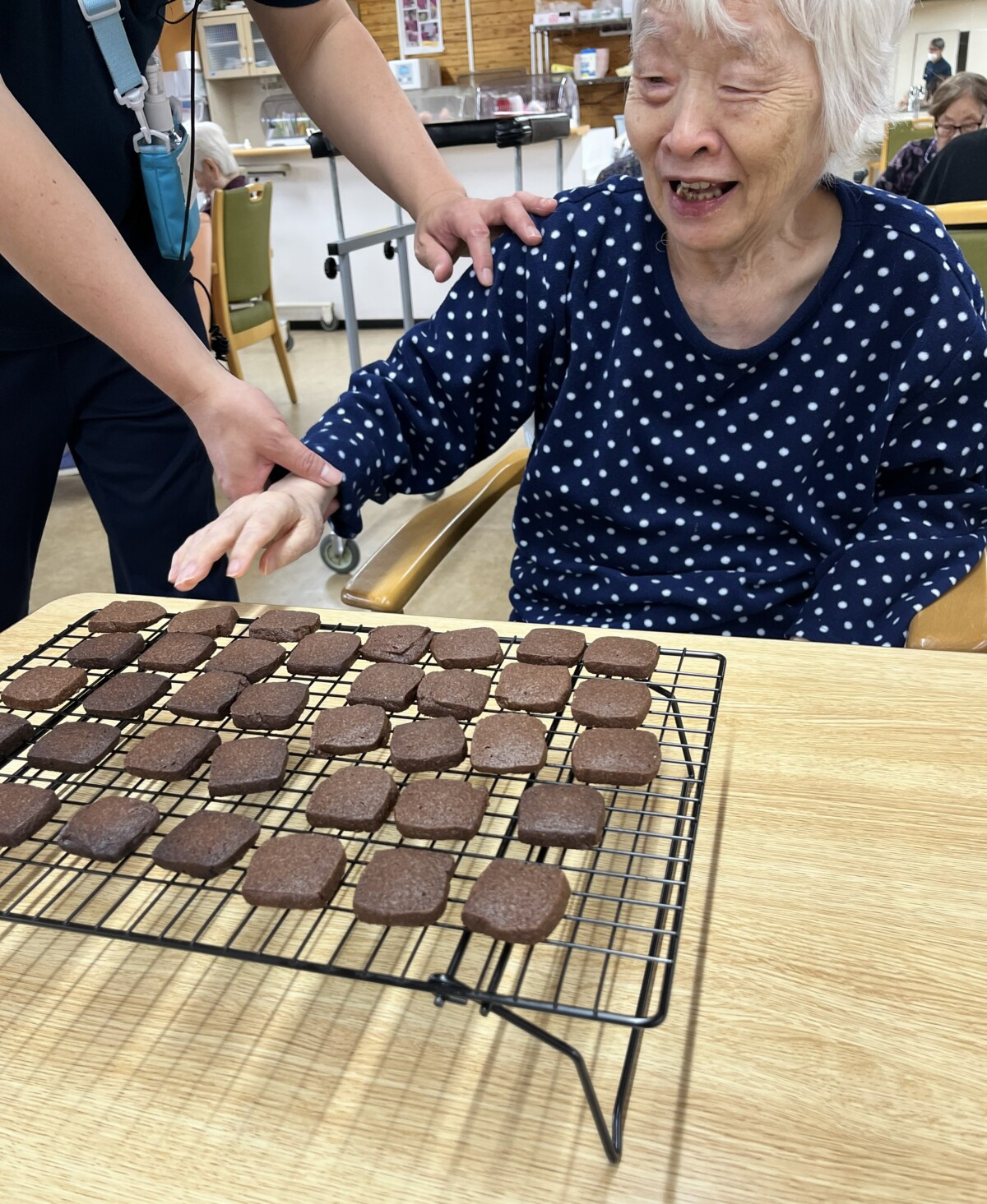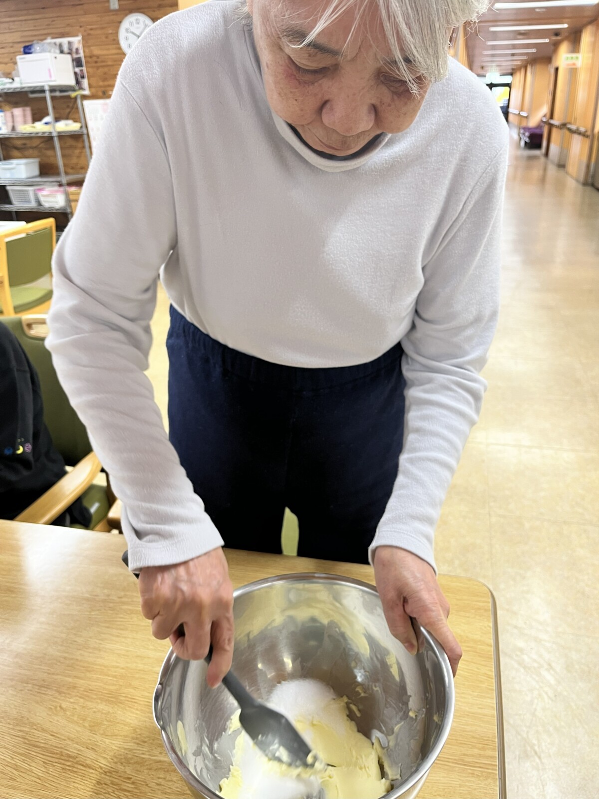 「美味しいわよ」「これ食べていいの?あなたもどう?」とワーカーに下さろうとする方もいらっしゃいました。フロア内に漂うバターの芳醇な香りと共にお喋りもいつもよりも弾んでいました♪