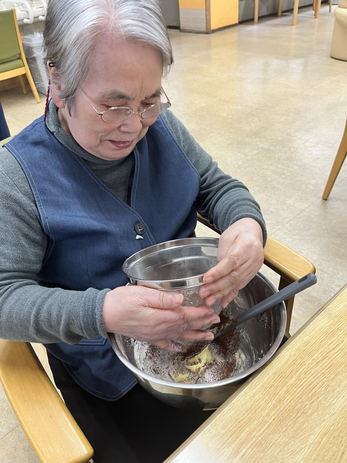 日曜日の午後、南陽園5階ではお楽しみ会を開催しました。今回は、クッキーを焼いておやつの時間に頂くことに♪