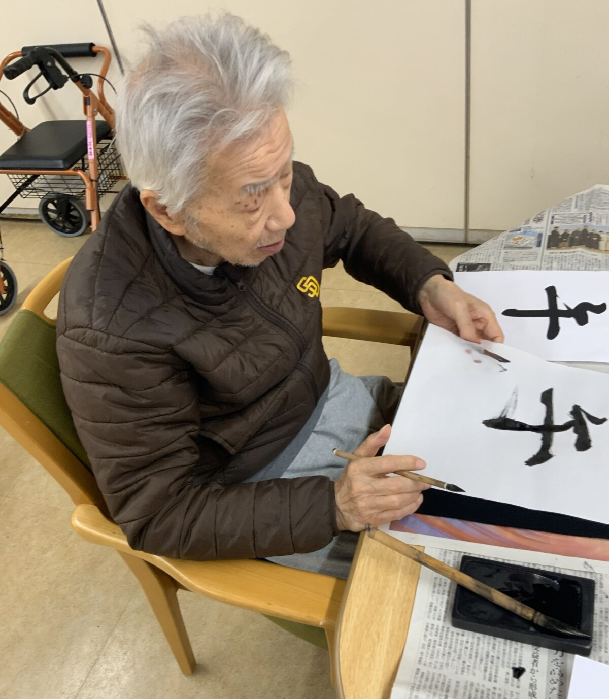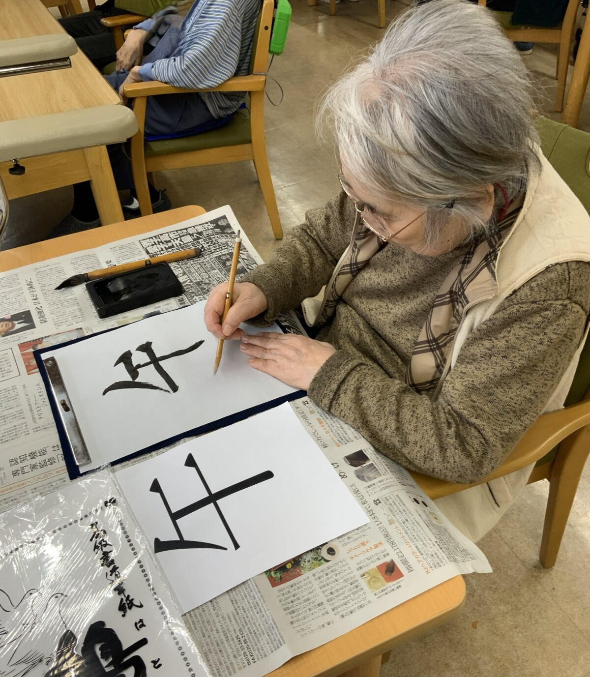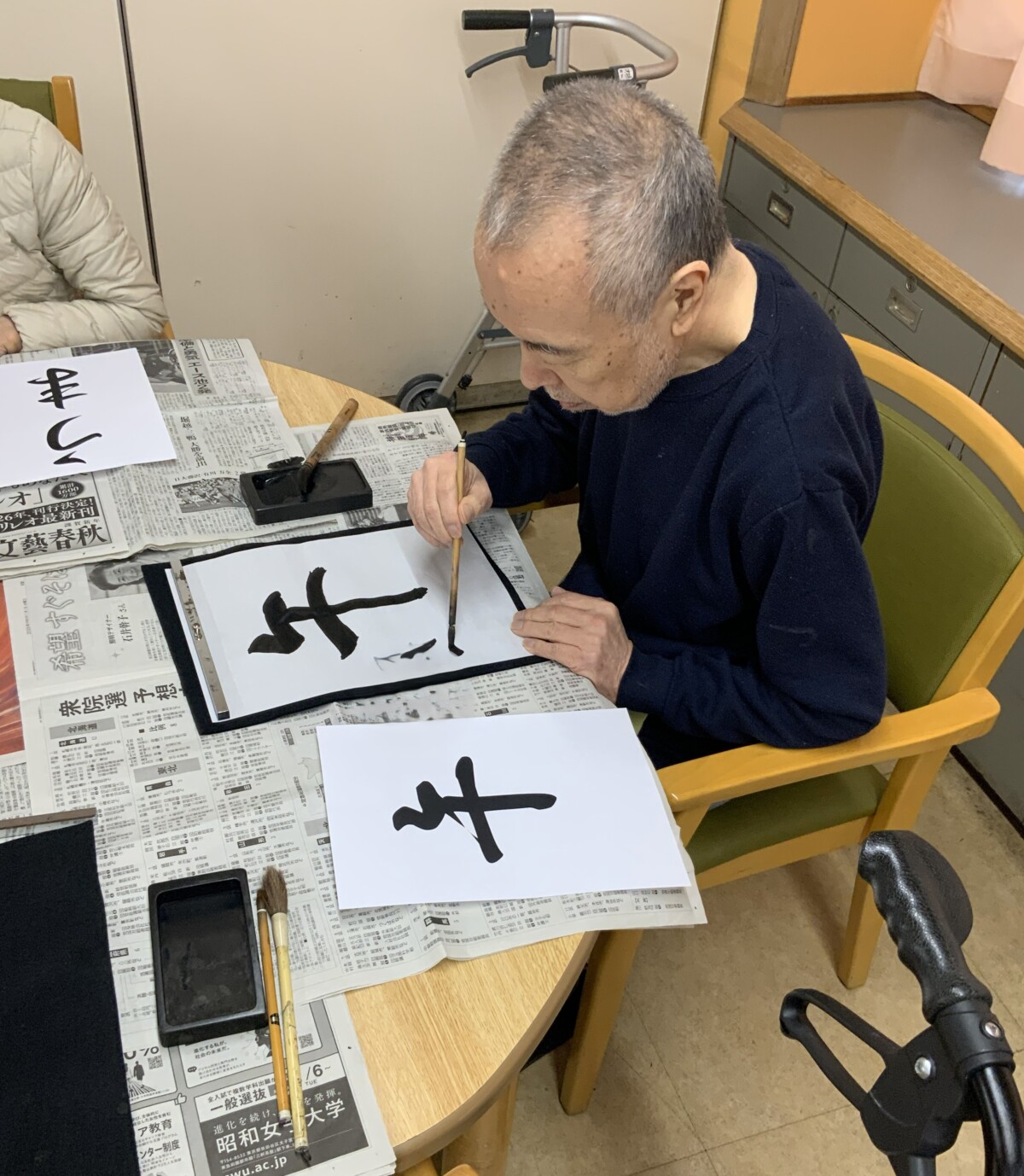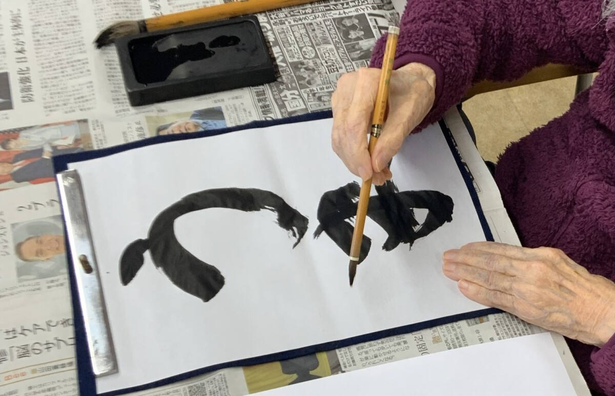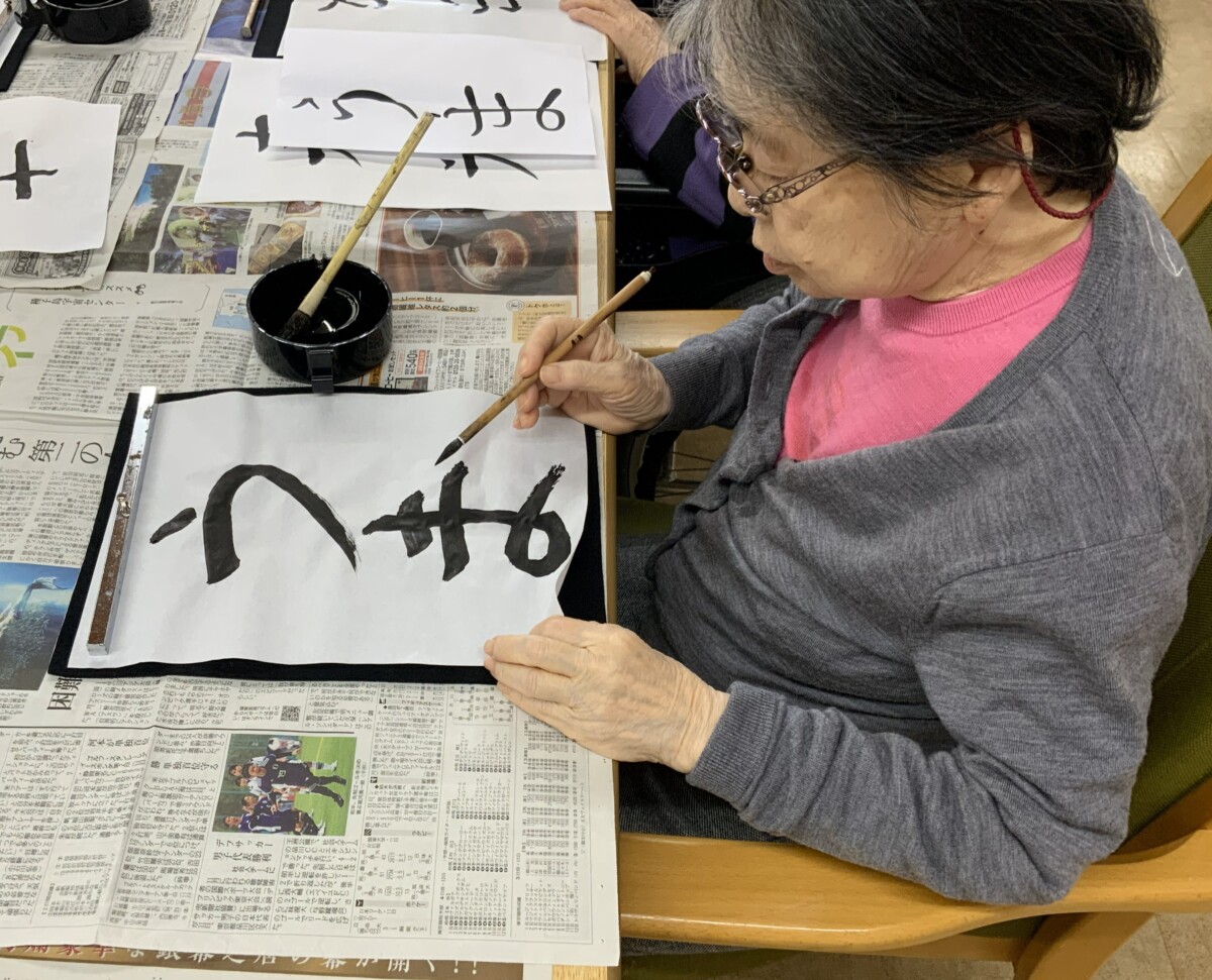 集中して取り組まれる姿や書き終えた後に作品を見せ合いながら、笑顔でお話しされるご様子がとても印象的でした。