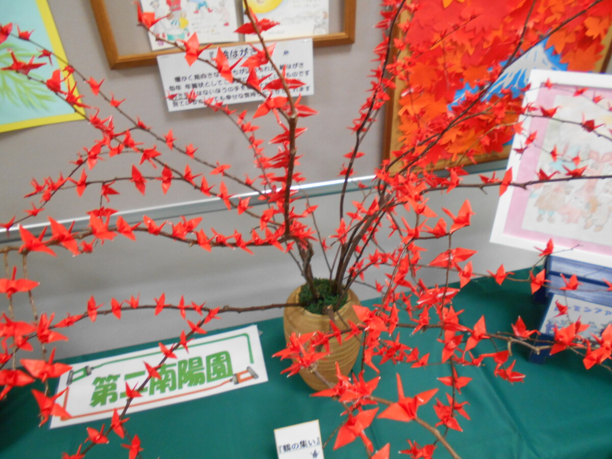 第二南陽園は、紅葉と銀杏の木をイメージした作品「鶴の集い」やドライフラワーを利用した作品「枯れた花」、切り絵の壁画「秋桜」「富士山」、ご家族へ宛てた心のこもった絵手紙、可愛らしいイラストをきれいに塗り絵した作品など、日々コツコツと楽しみながら作られた素晴らしい作品を展示させていただきましたので、ご紹介いたします♪