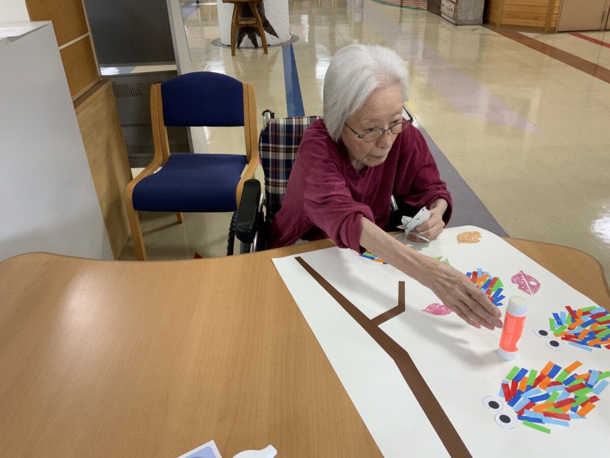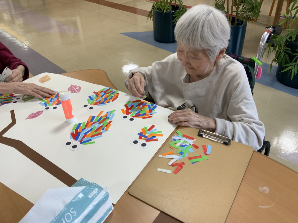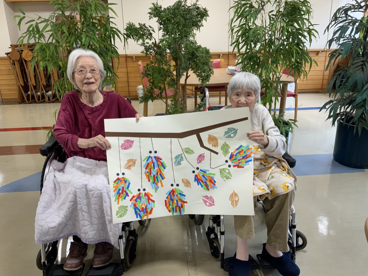 ご利用者の皆様に手伝ってもらい、秋を感じる作品を作りました。