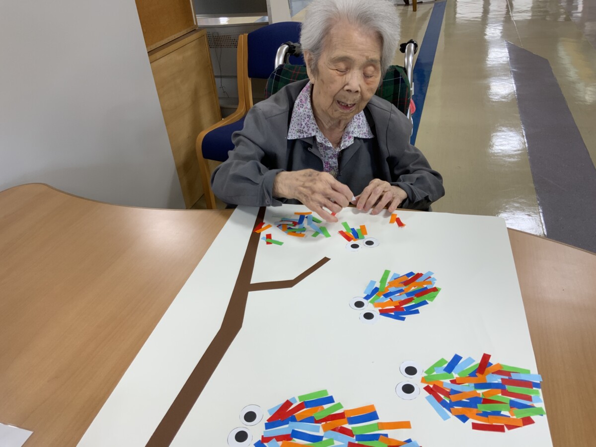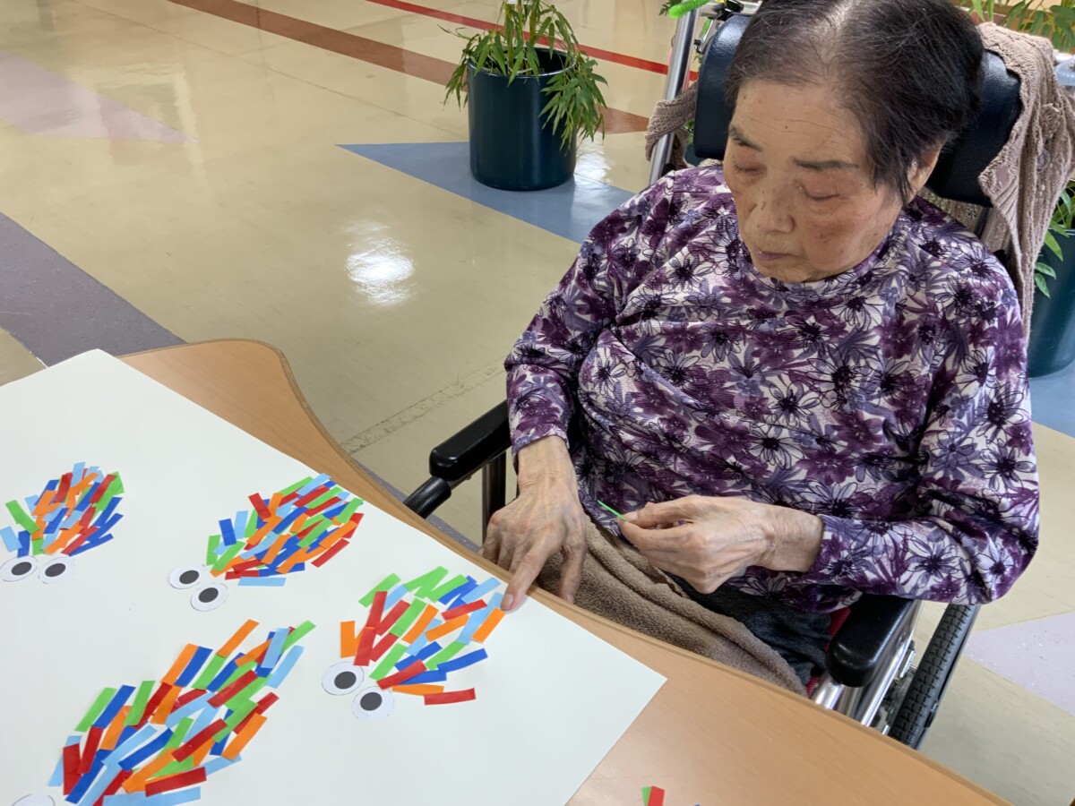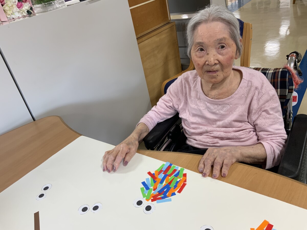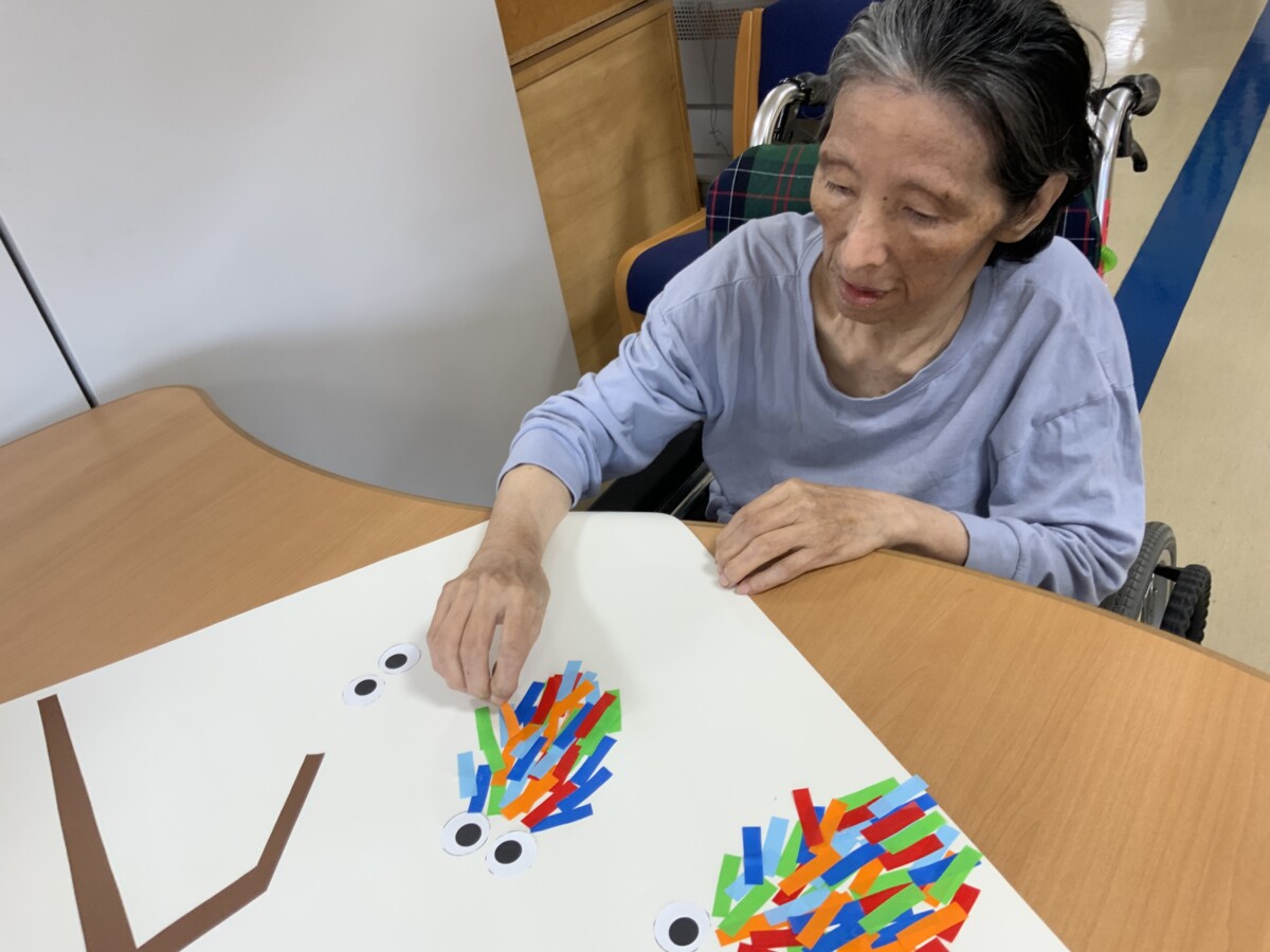ご利用者の皆様に手伝ってもらい、秋を感じる作品を作りました。