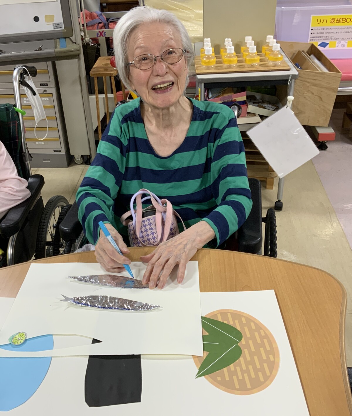 線を引いたり、のりで貼ったりとご利用者の皆様に手伝ってもらい