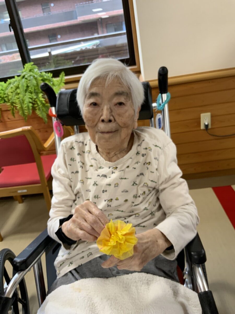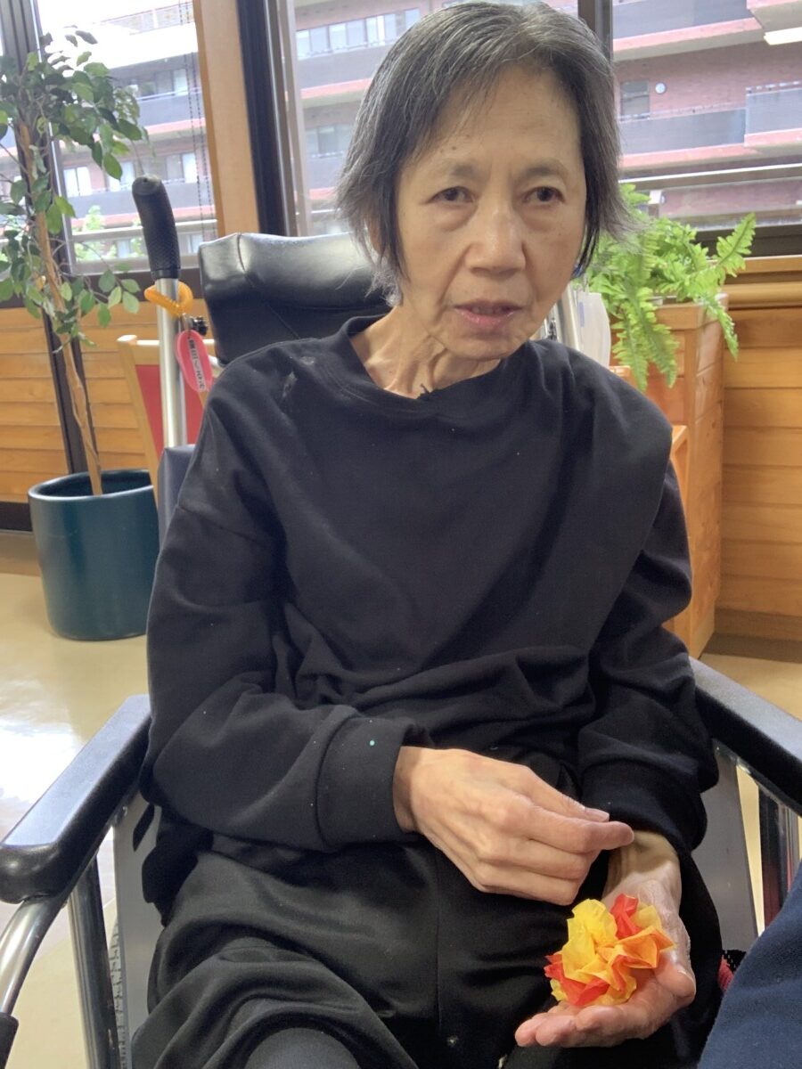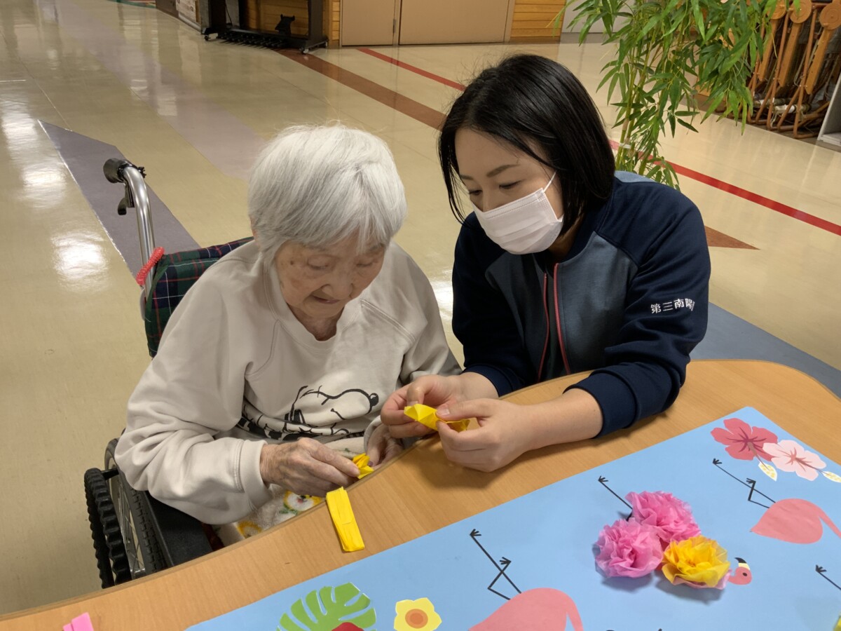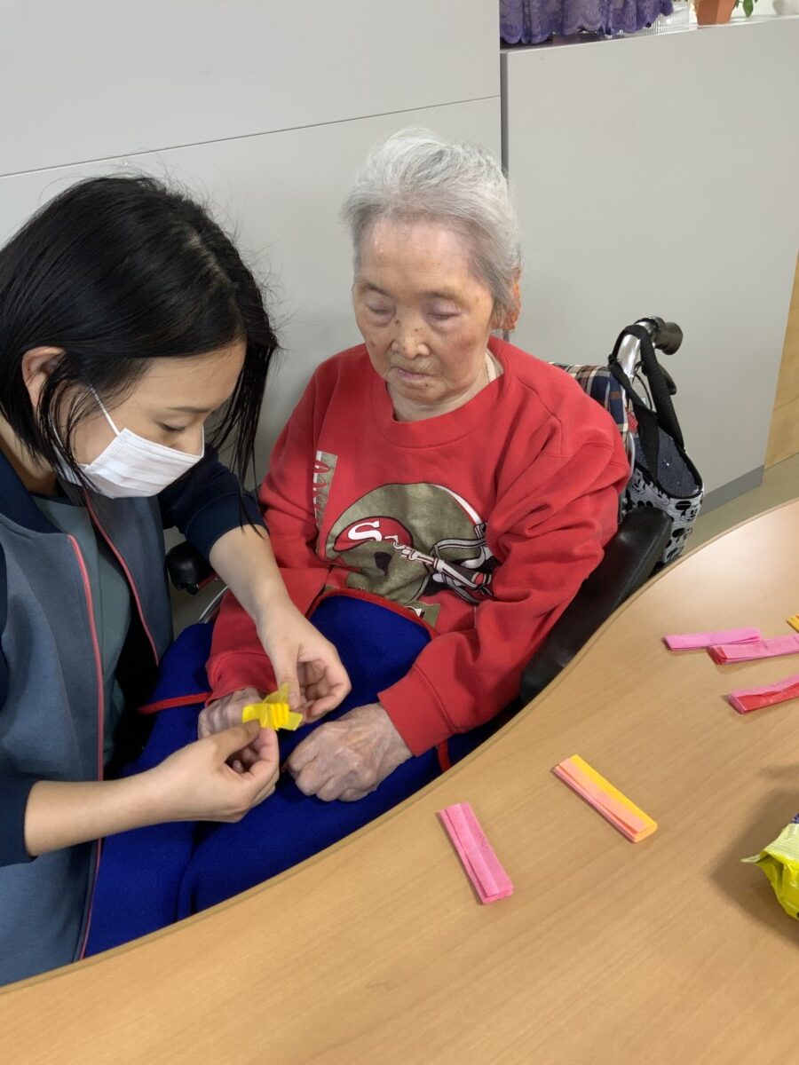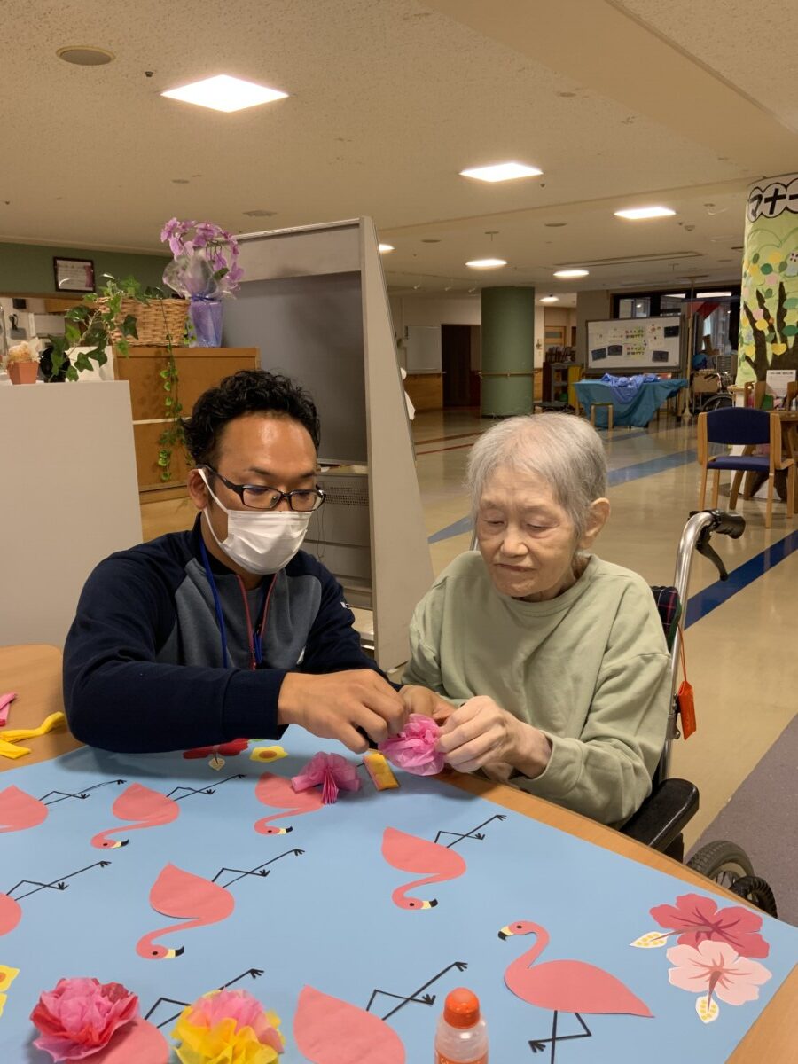 お花紙を支えたり、開いたり、ノリで貼ったりと