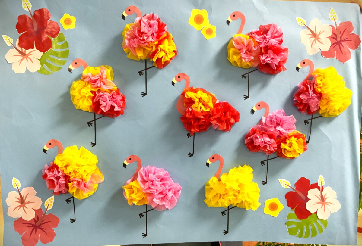 お花紙を使い、フラミンゴをゴージャスに仕上げました✨