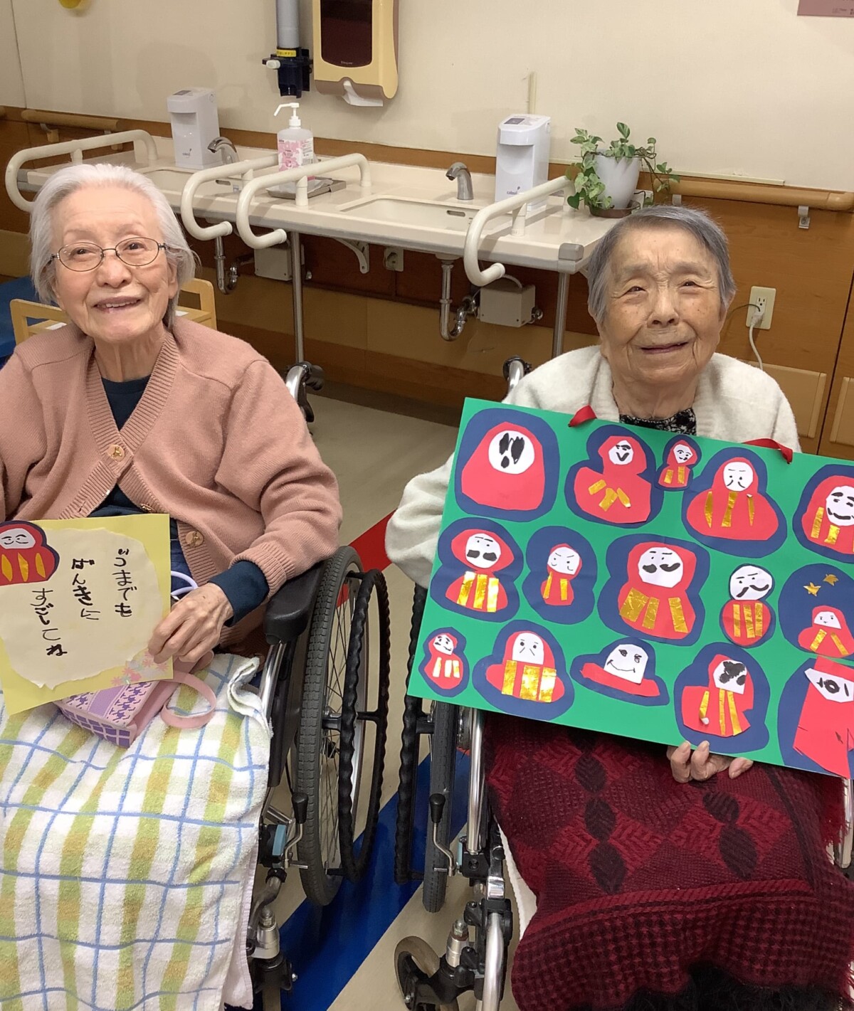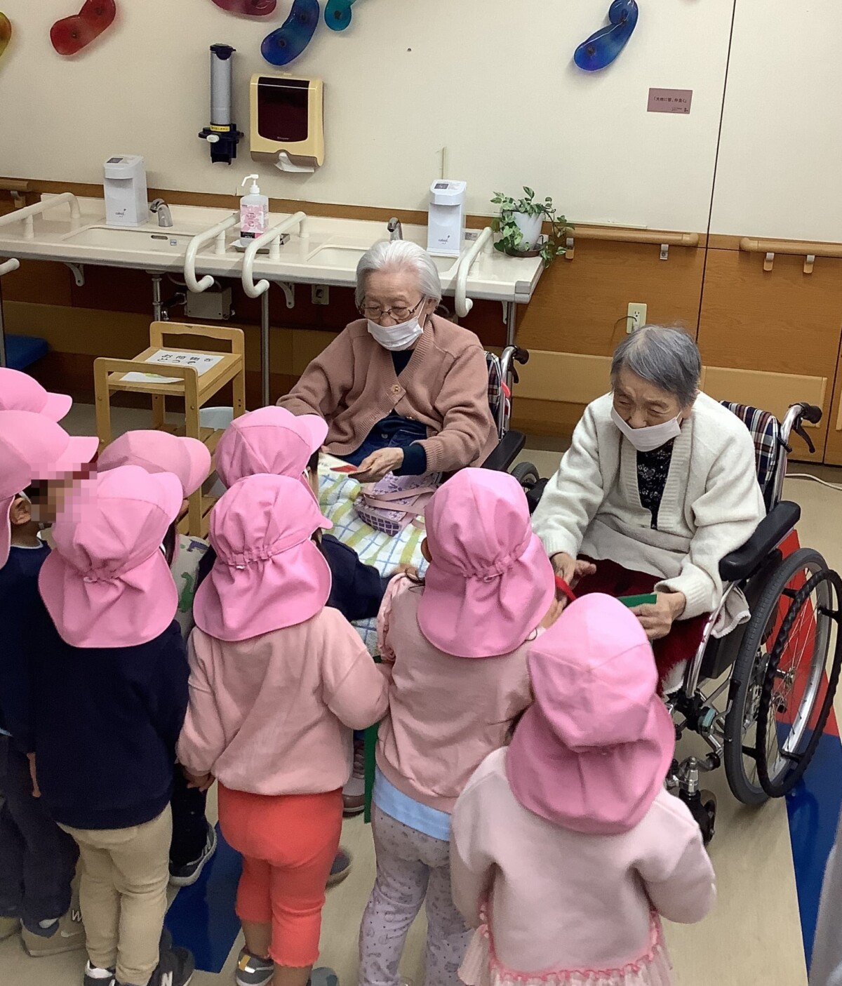 代表で受け取ったご利用者の皆さまも「よく出来てるねー」と嬉しそうでした。園児さんたちと触れ合えた時の笑顔は格別です!!
