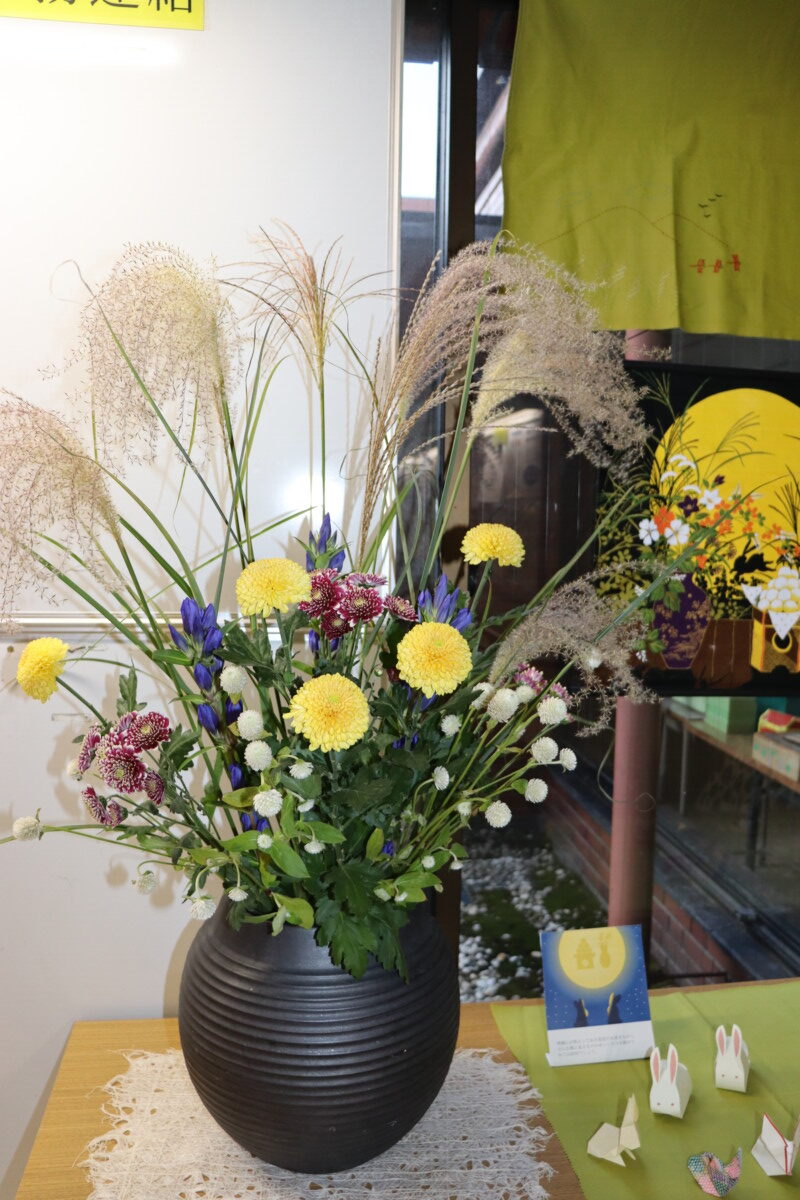 松風園の昼食では月見うどんを味わい、目には見えない月でしたがそれぞれお団子を頂きながらその風情を楽しみました。