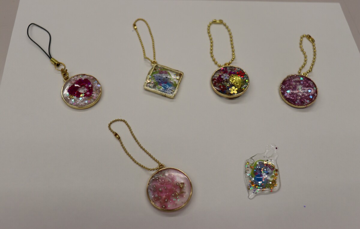 宝石のようにキラキラ光るレジンチャームを手に取り、皆様嬉しそうに満族そうな笑顔で眺めていました。