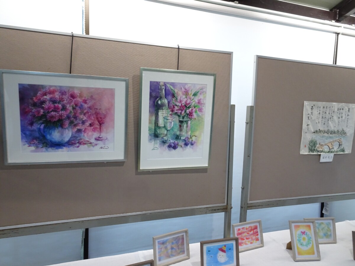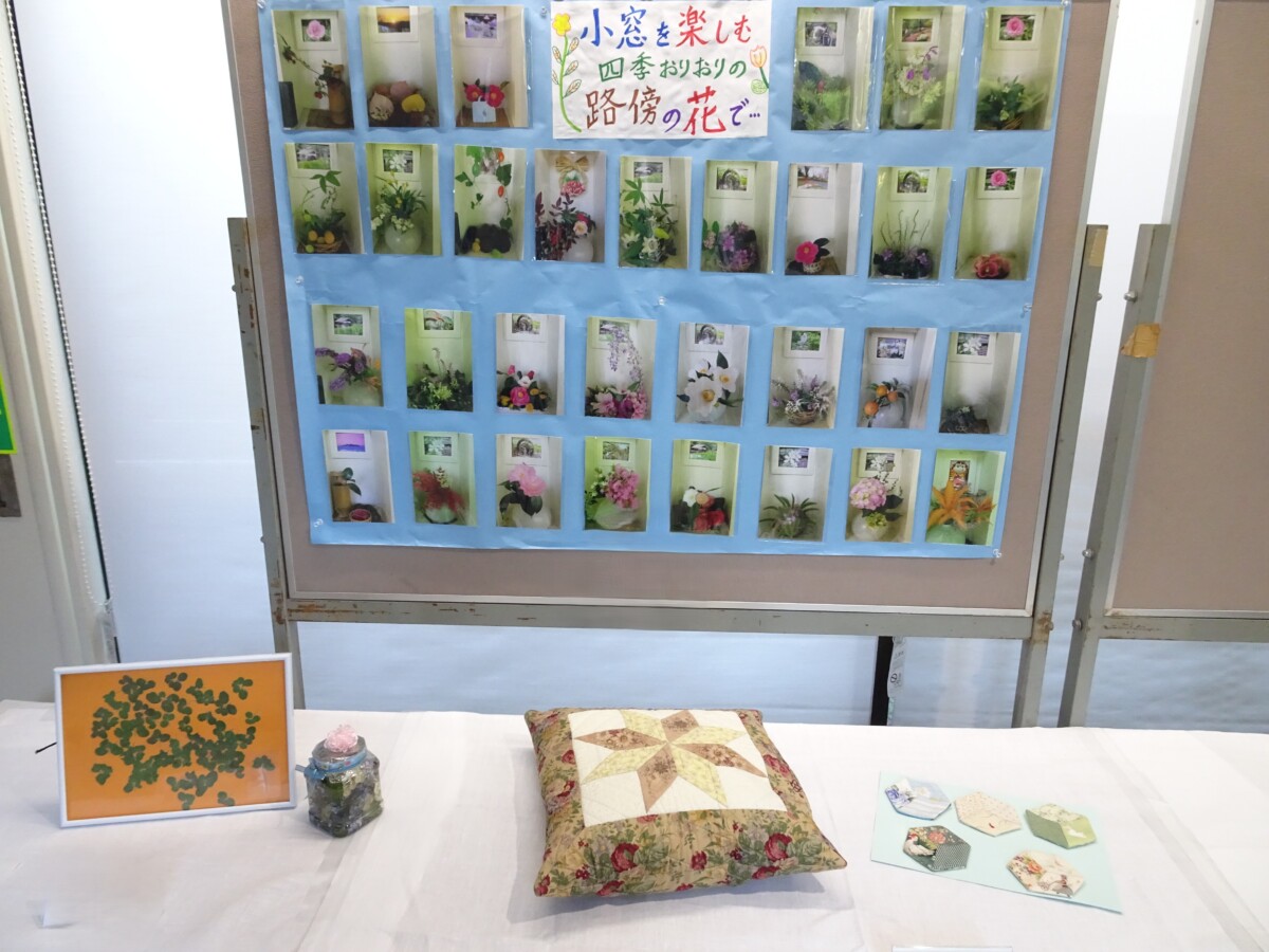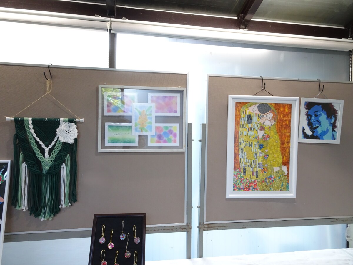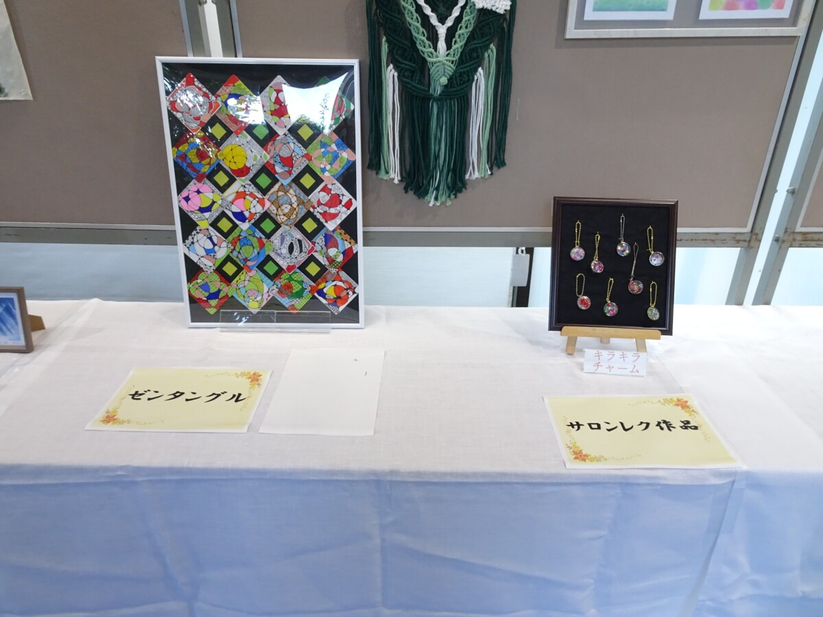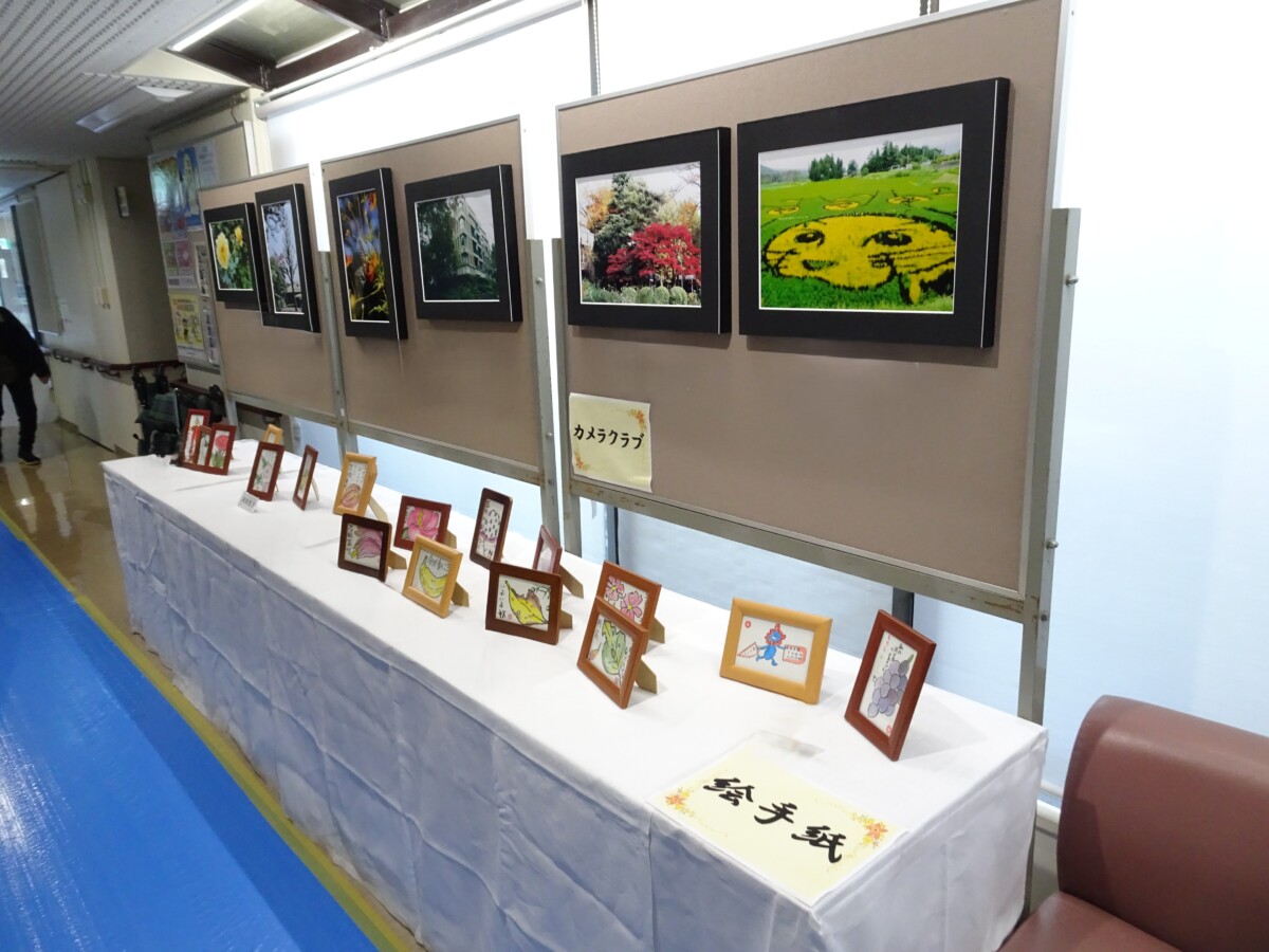 園内で作品展示があり、特技・趣味の1年の成果を発表する場として楽しみにしていた方々が出品しました。各クラブ作品・サロンレクリエーションでの作品、個人作品、職員の作品が飾られ、どれも力作で見応えのある作品でした。