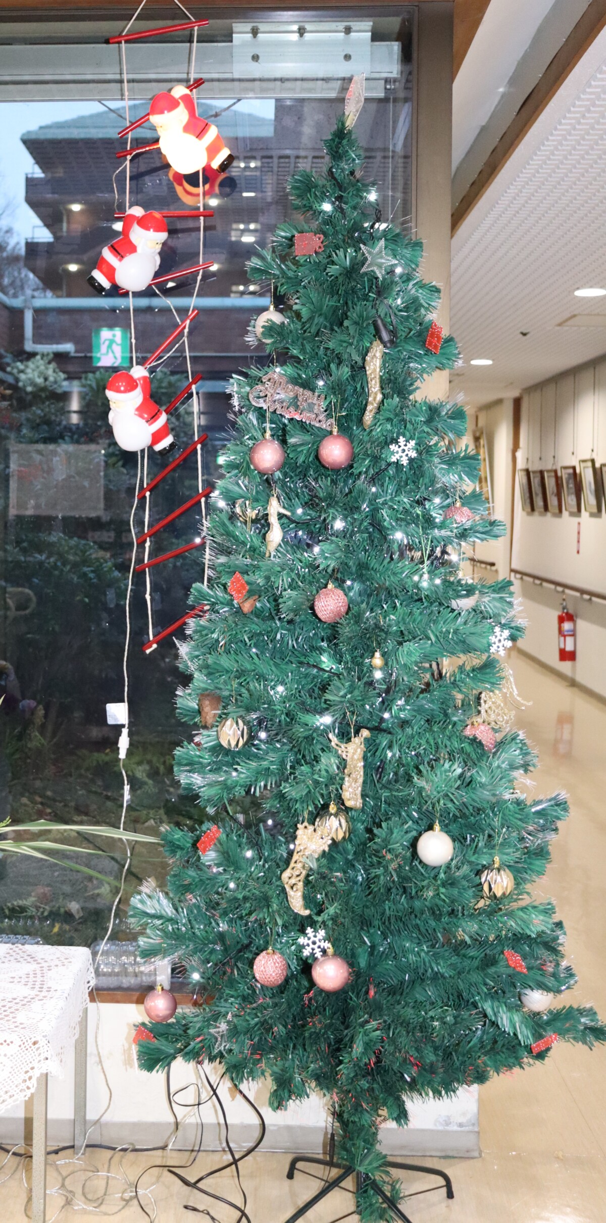 廊下や食堂前から見えるイルミネーションの美しさにご利用者の会話も弾みます。