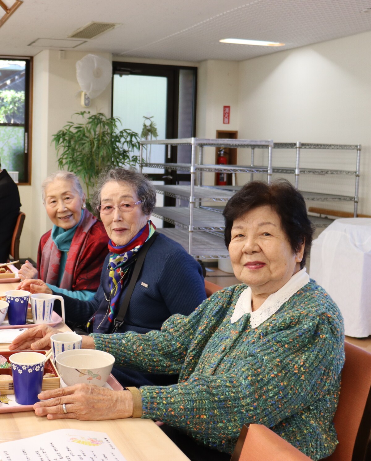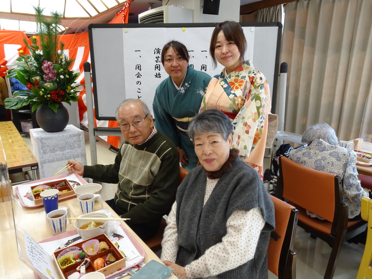美味しいお節料理を頂きながら、歌や踊りや詩吟等お正月らしい華やかな舞台を楽しみました。