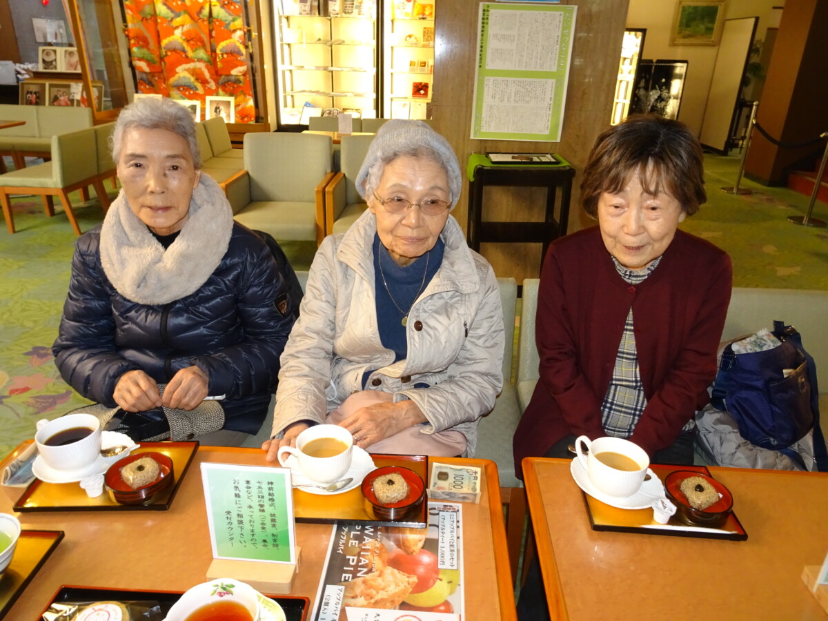 清涼殿で名物のへそ饅頭とお茶で一休み。