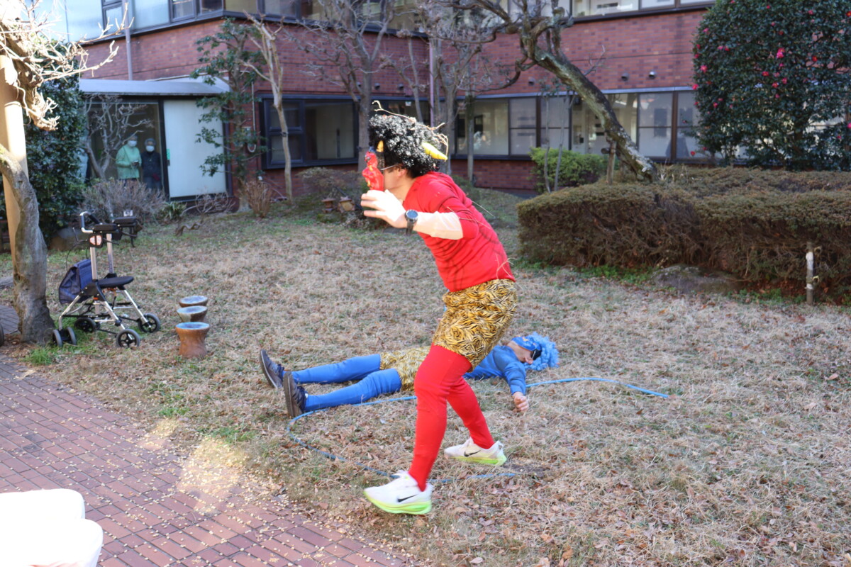 今年の松風鬼は演技力抜群でご利用者に向かっていきましたが大きな豆をぶつけられて退散しました。