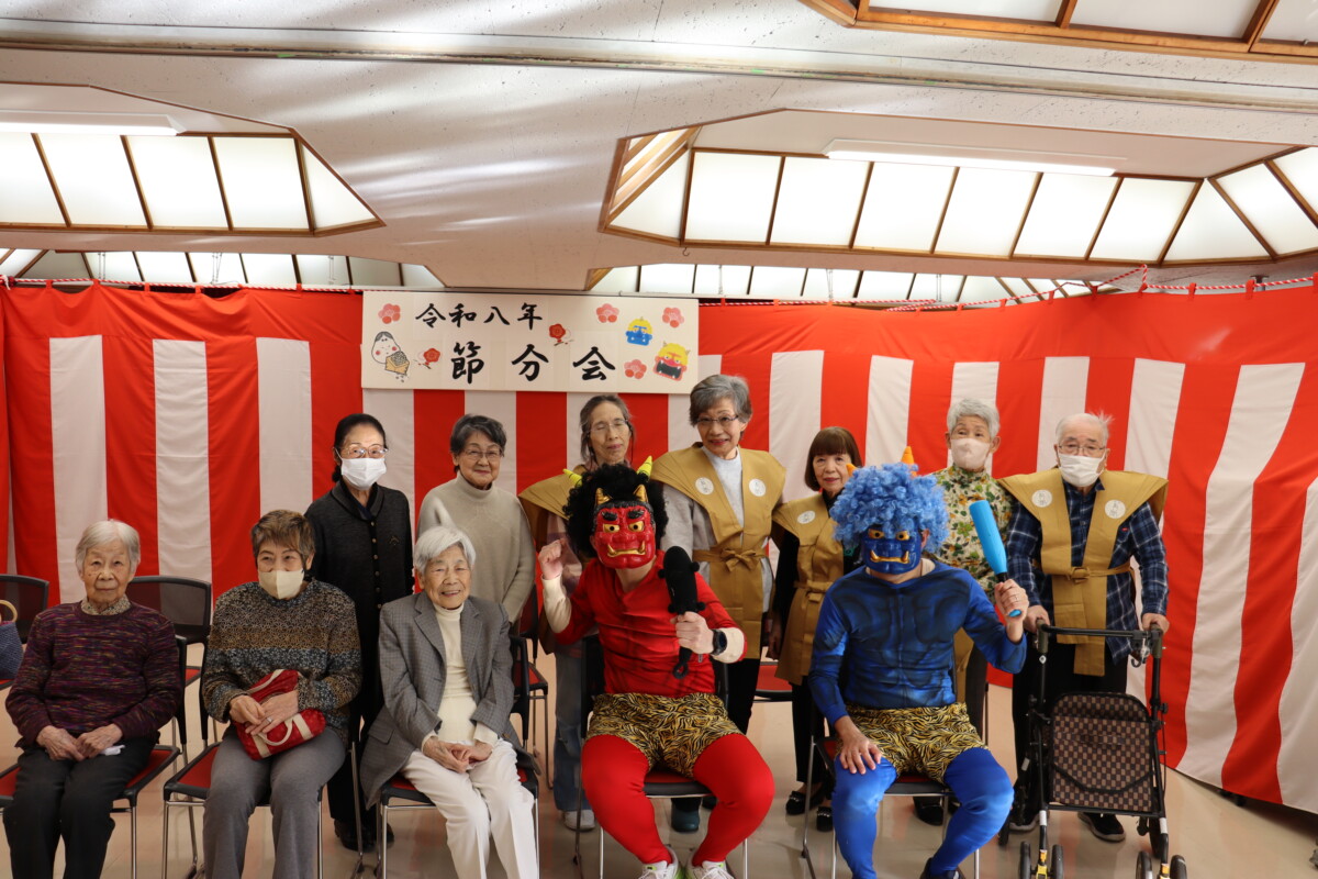 2月3日 年男と年女により「鬼は外」「福は内」と唱えながら元気に豆まきが行なわれました。