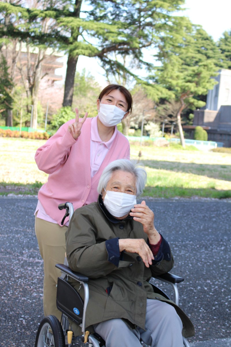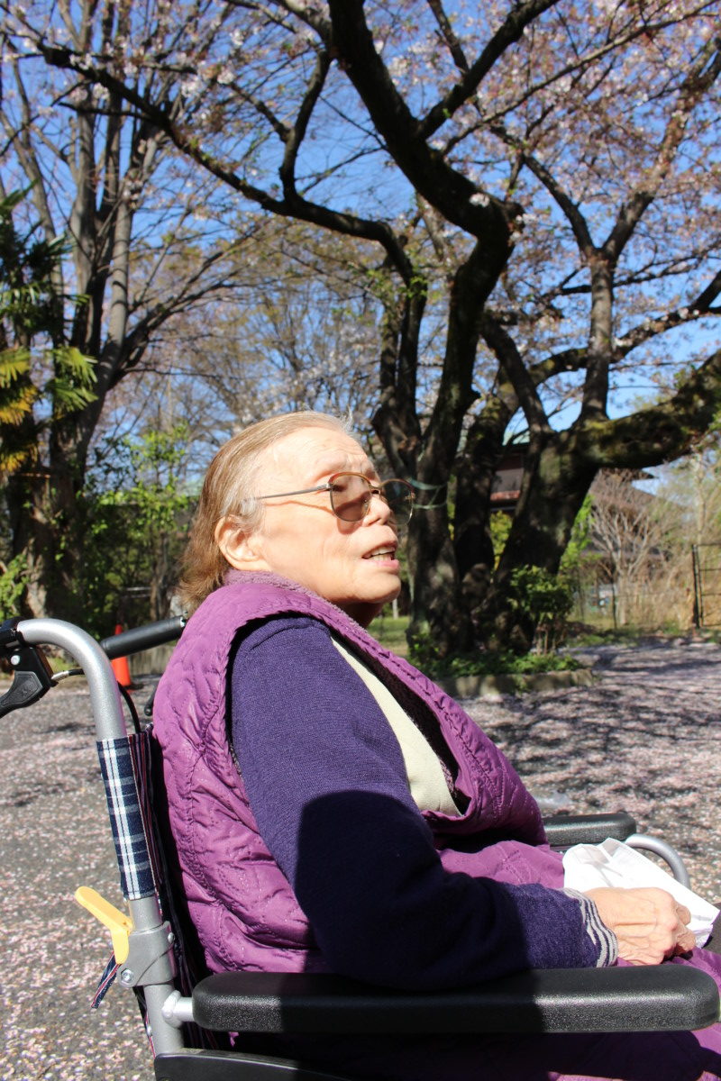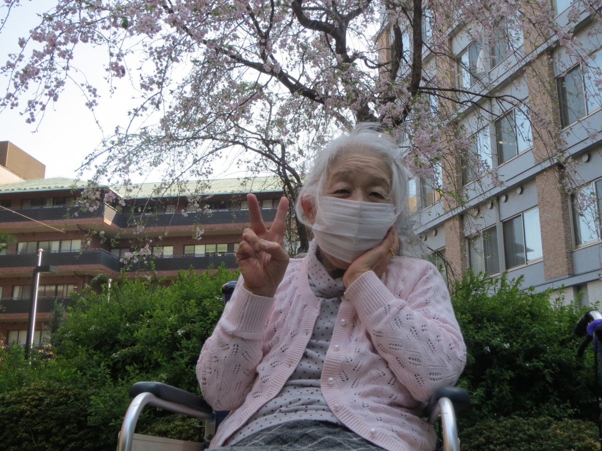 午後にはお散歩を希望された方と会内の桜の名所を回り、桜の絨毯や桜吹雪等、お花見を堪能しました。