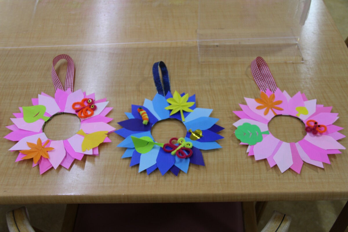 秋にちなんだ色鮮やかな花輪がたくさん完成です!