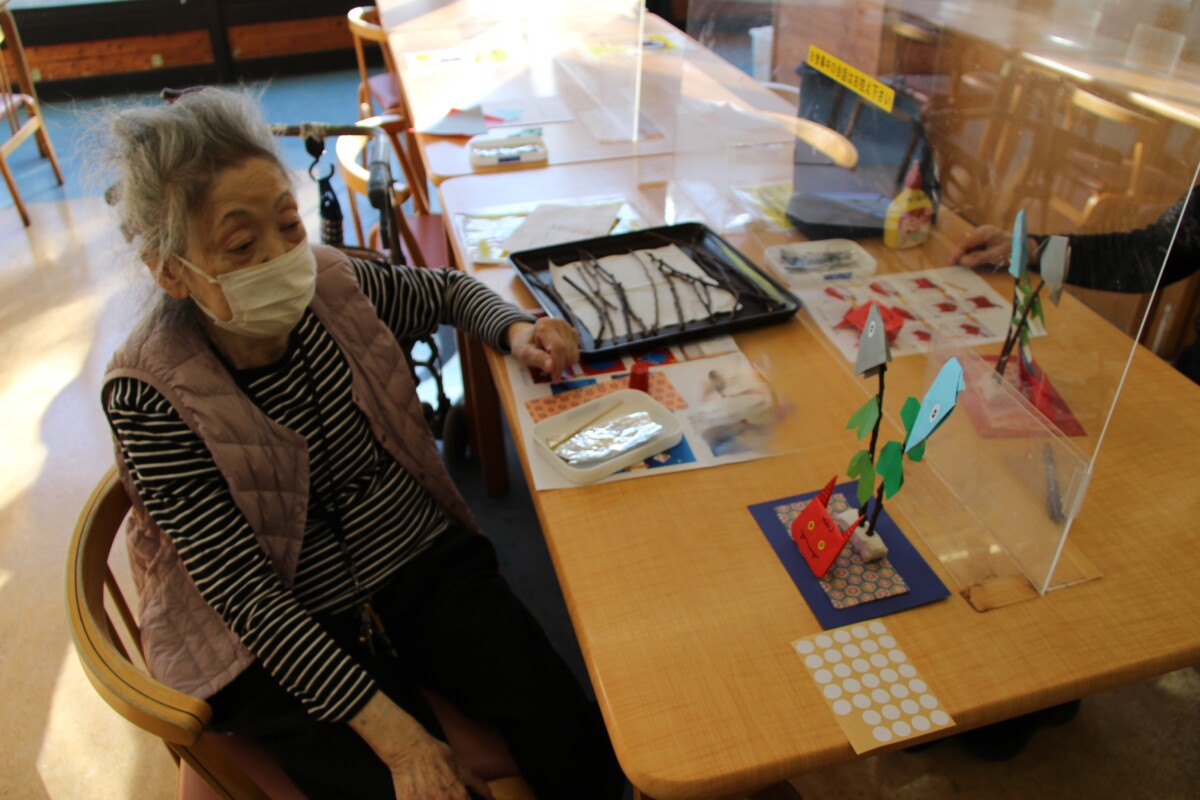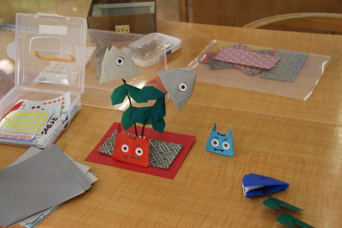 今回は来月の節分にちなみ、鬼の顔と柊イワシの作品を作りました。